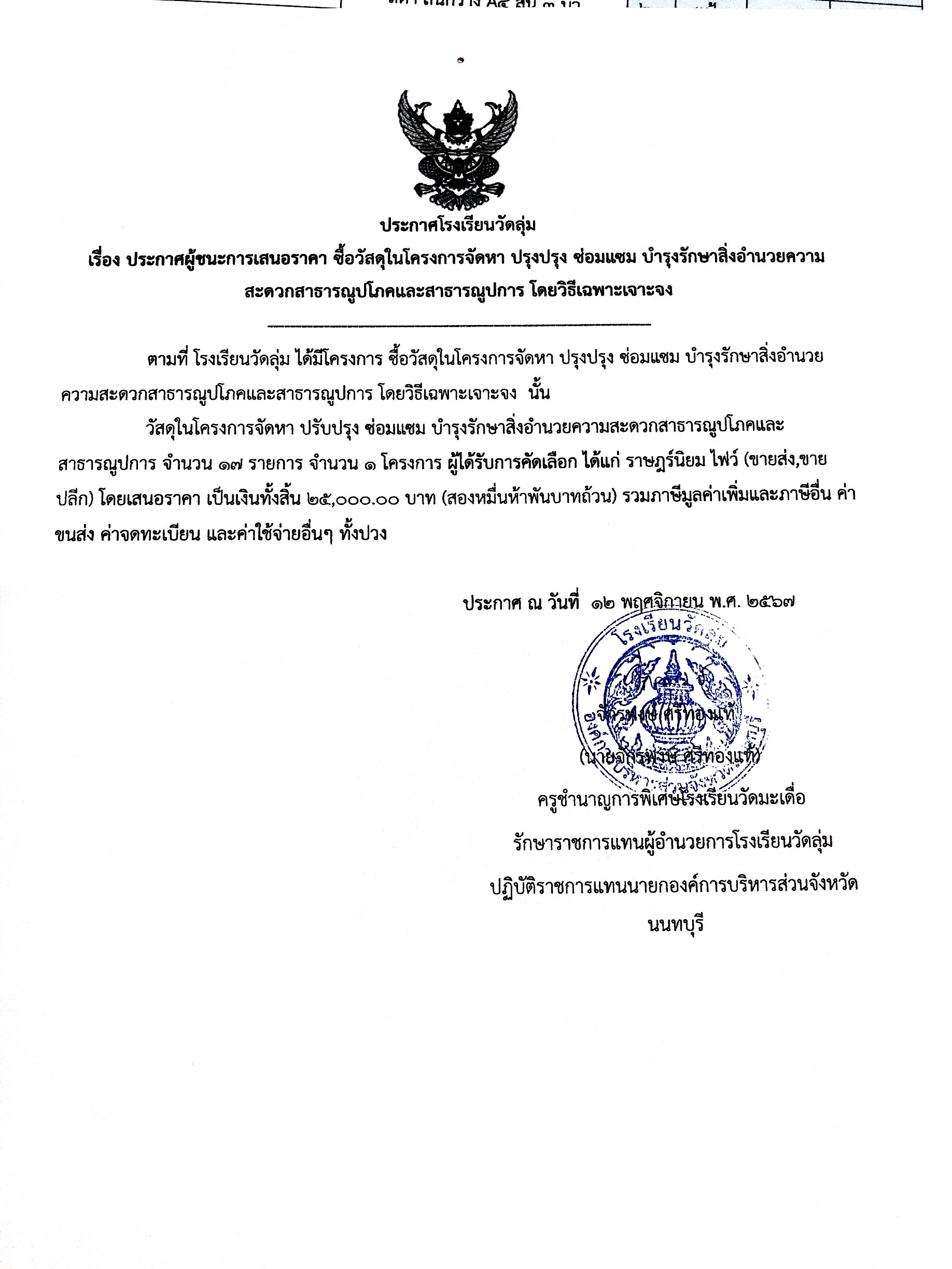 ประกาศโครงการจัดหาปรับปรุงซ่อมแซมบำรุงรักษาสิ่งอำนวยความสะดวกสาธารณูปโภคและสาธารณูปการ