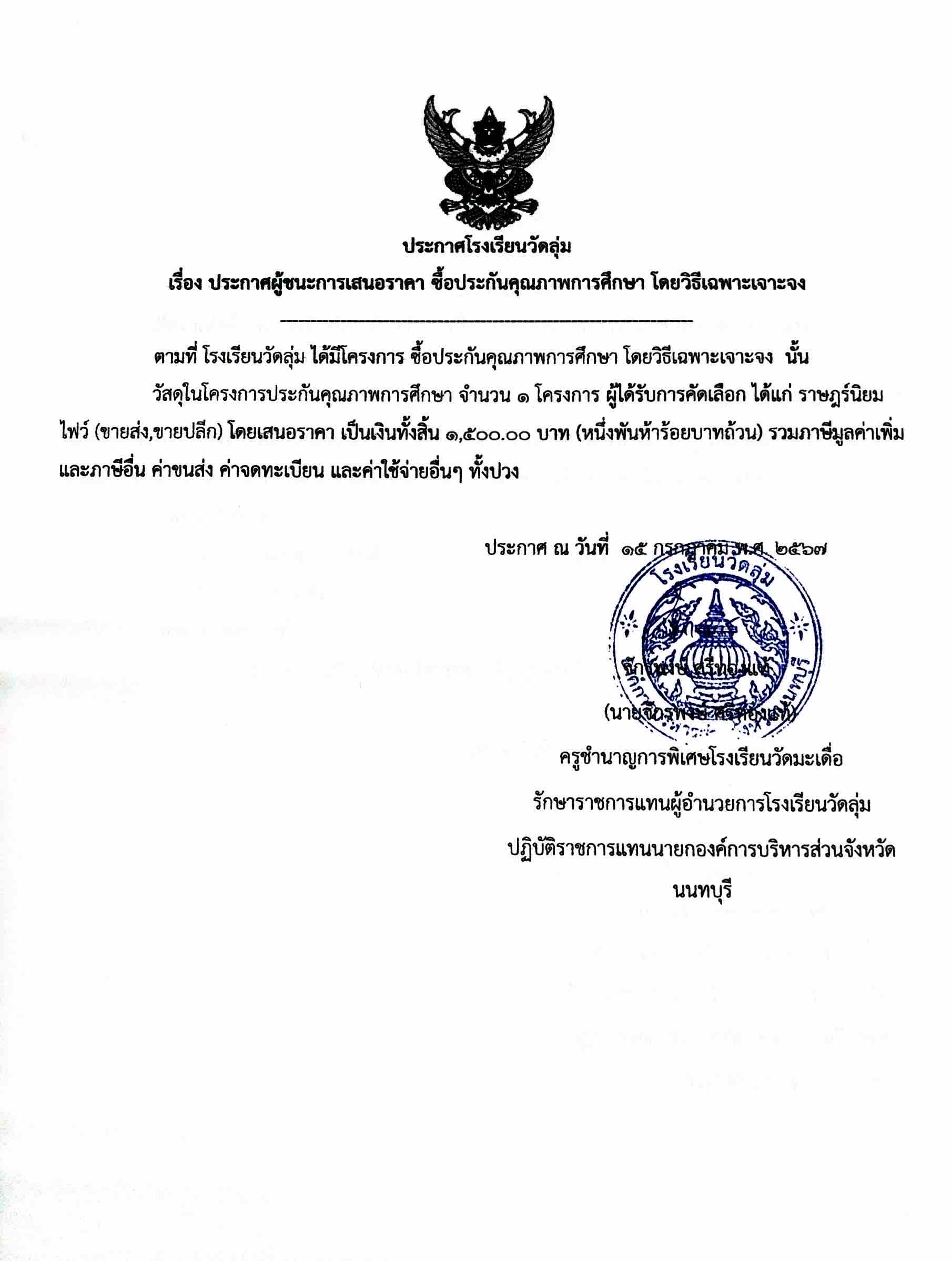 ประกาศโครงการประกันคุณภาพการศึกษา