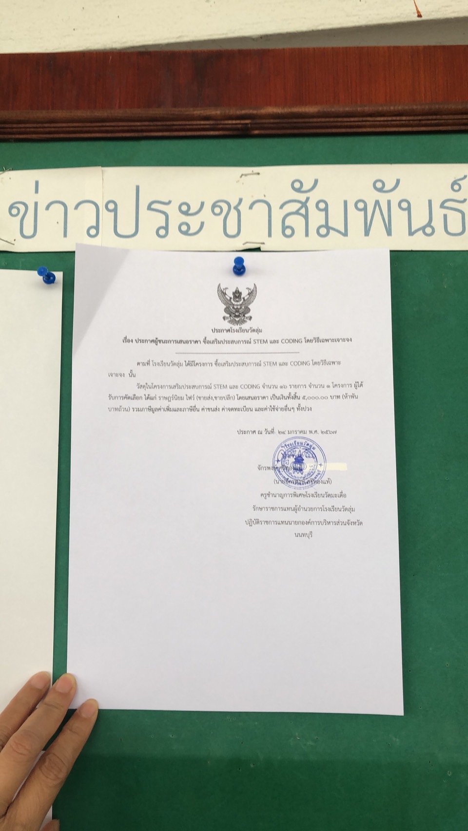 ประกาศการจัดซื้อโครงการเสริมประสบการณ์ STEM