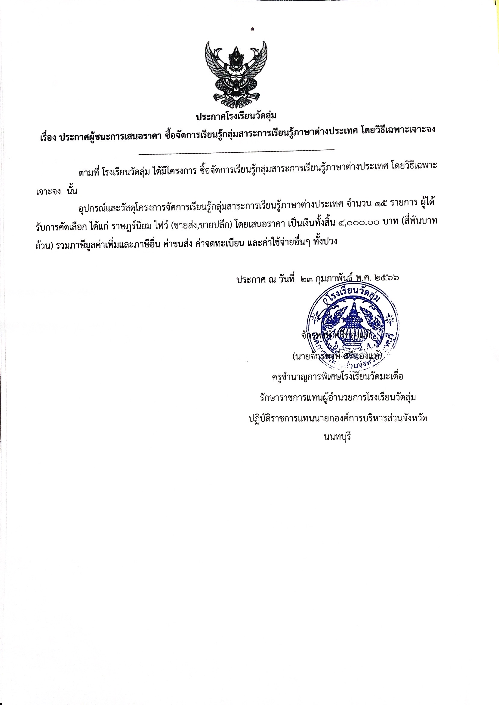 ประกาศโครงการจัดการเรียนรู้กลุ่มสาระการเรียนรู้ภาษาต่างประเทศ