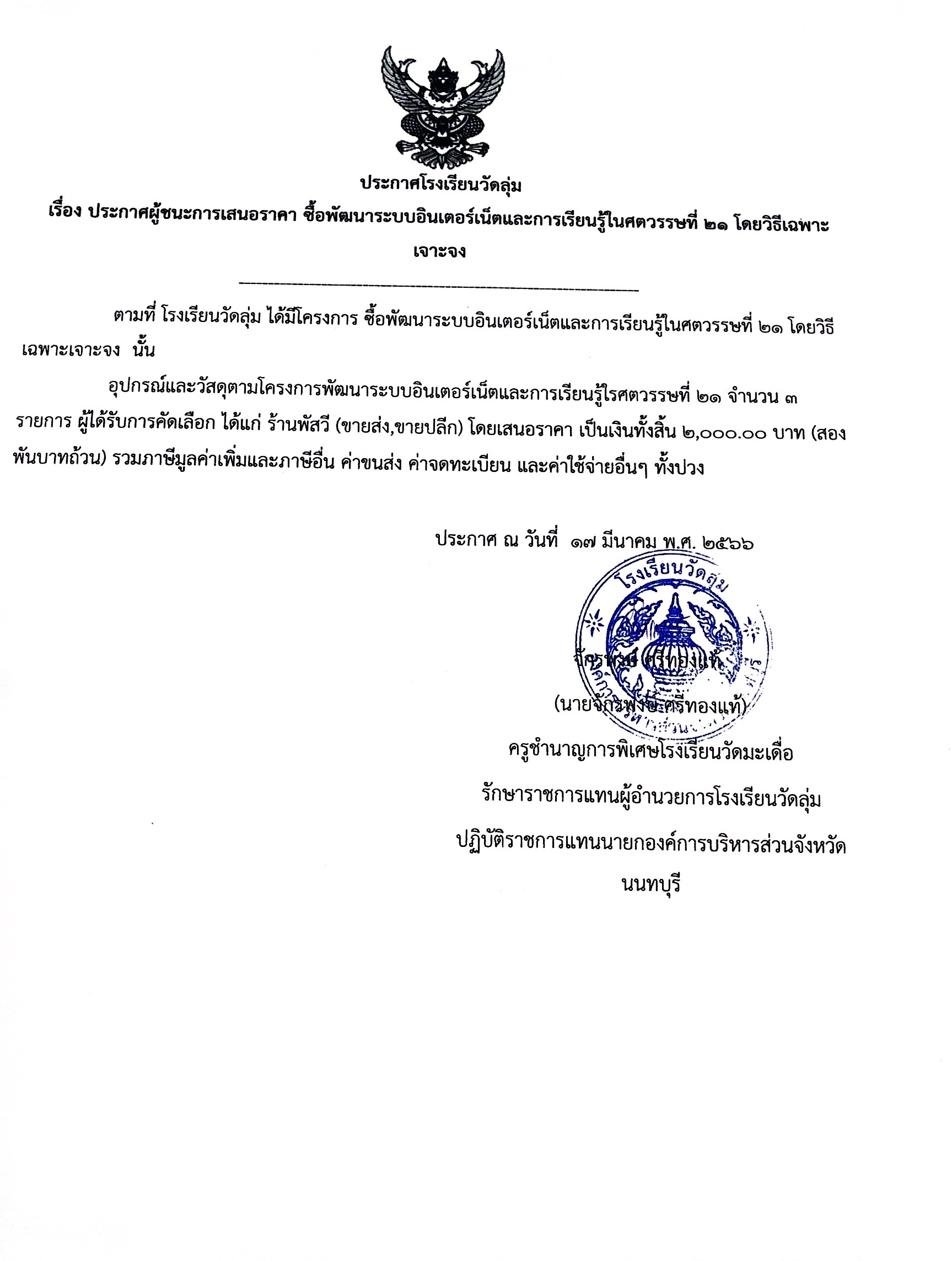 ประกาศโครงการพัฒนาระบบอินเตอร์เน็ตและการเรียนรู้ในศตวรรษที่ ๒๑
