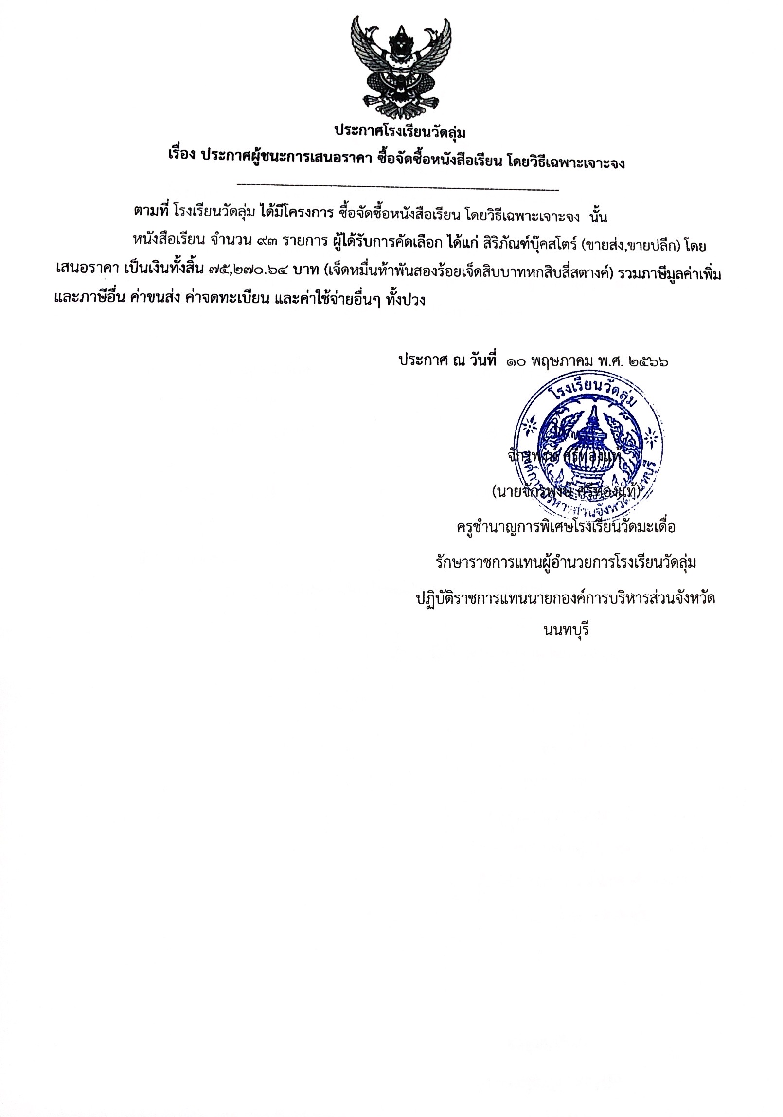 ประกาศโครงการจัดซื้อหนังสือเรียน