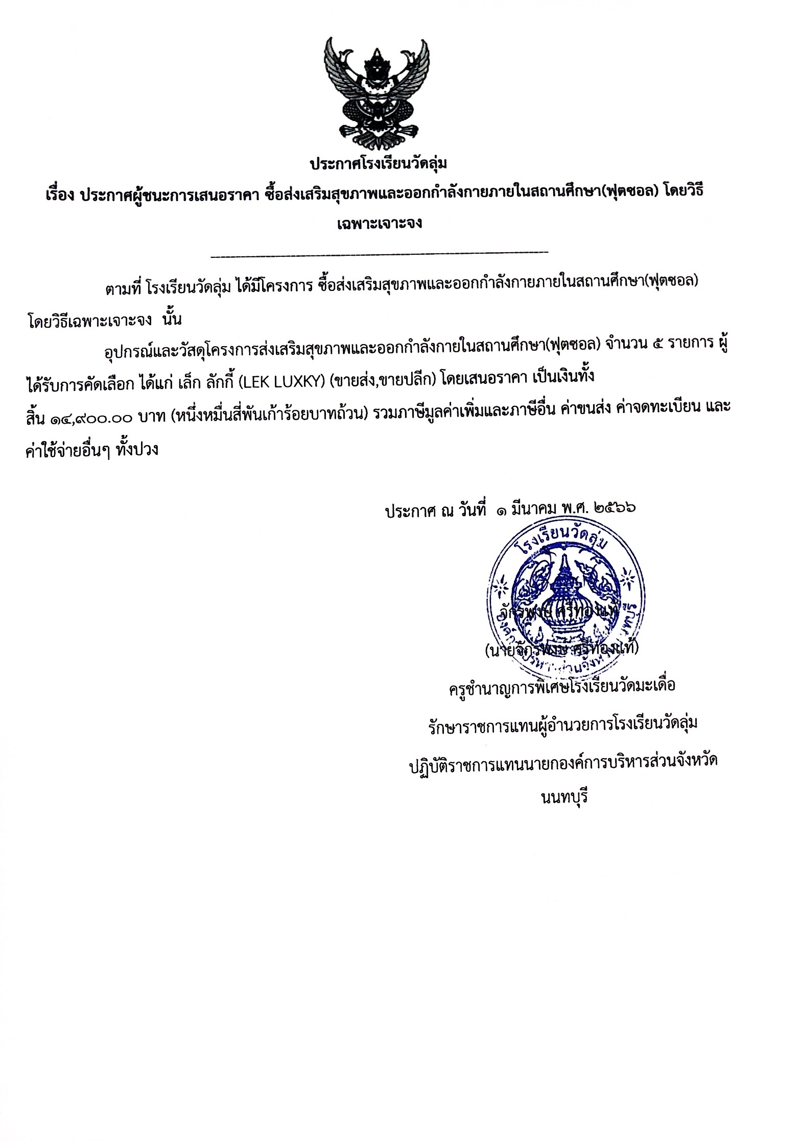 ประกาศโครงการส่งเสริมสุขภาพและออกกำลังกายภายในสถานศึกษา(ฟุตซอล)