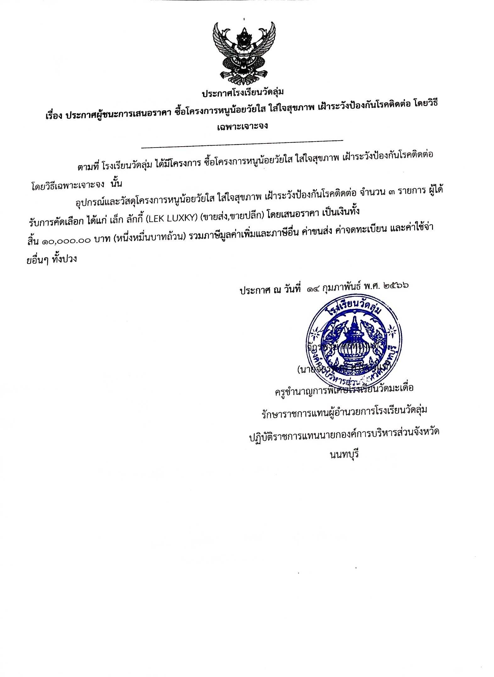ประกาศโครงการหนูน้อยวัยใส ใส่ใจสุขภาพ เฝ้าระวังป้องกันโรคติดต่อ