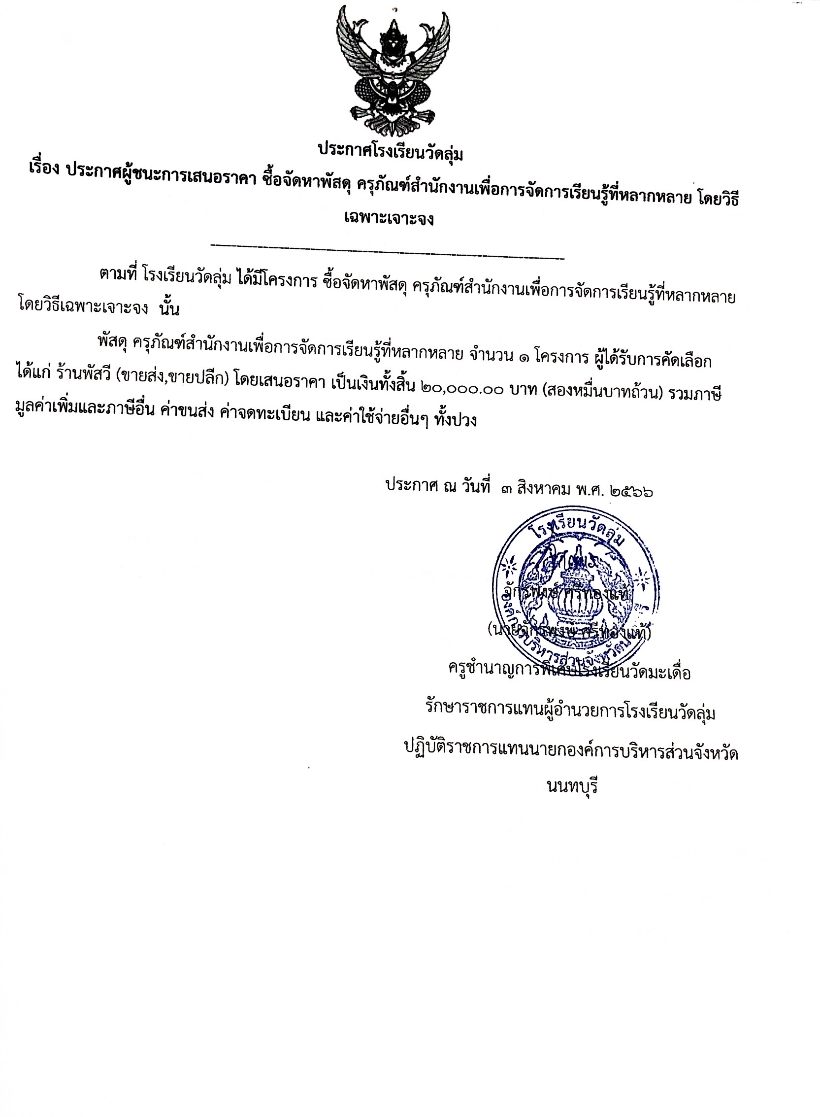 ประกาศโครงการจัดหา ครุภัณฑ์สำนักงานเพื่อการจัดการเรียนรู้ที่หลากหลาย