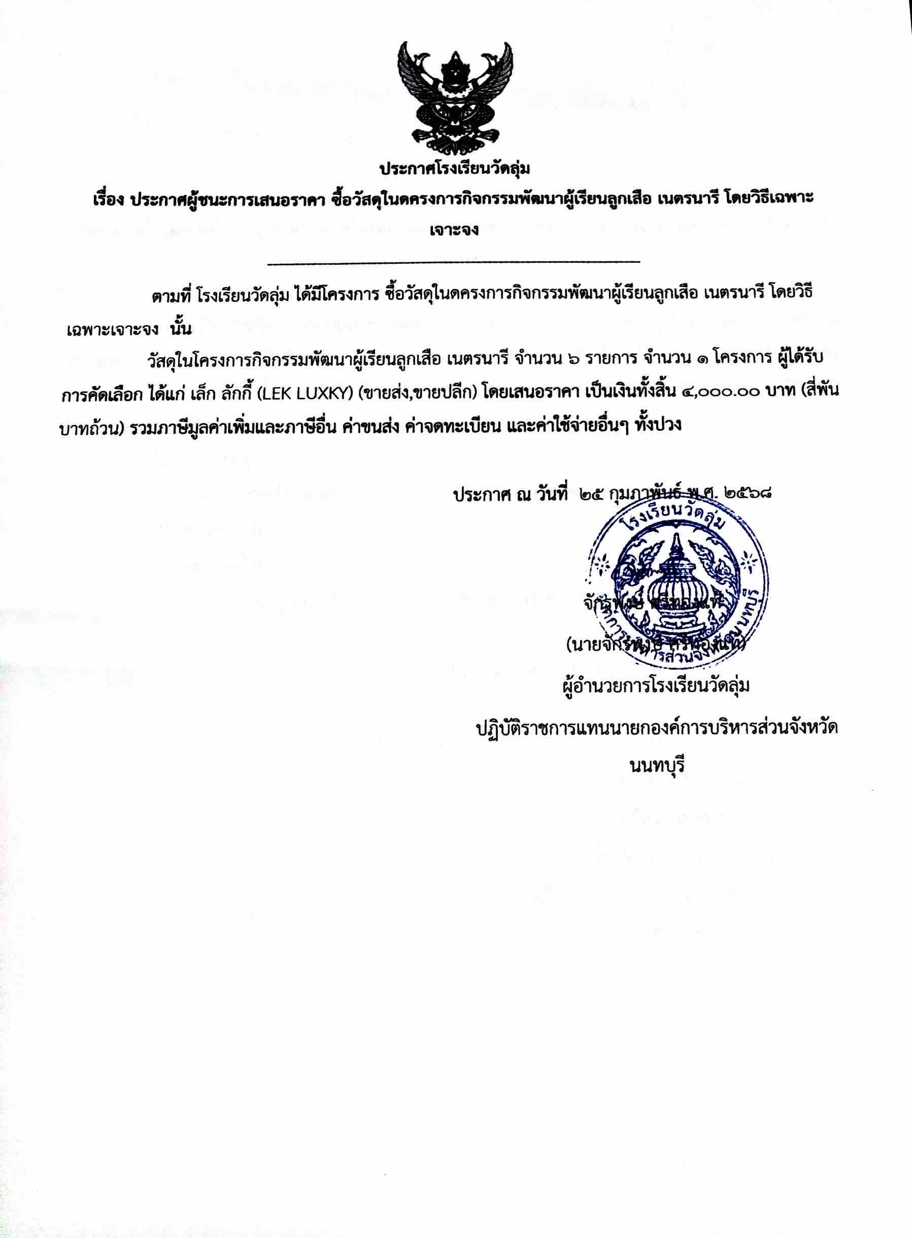 ประกาศโครงการกิจกรรมพัฒนาผู้เรียนลูกเสือ เนตรนารี