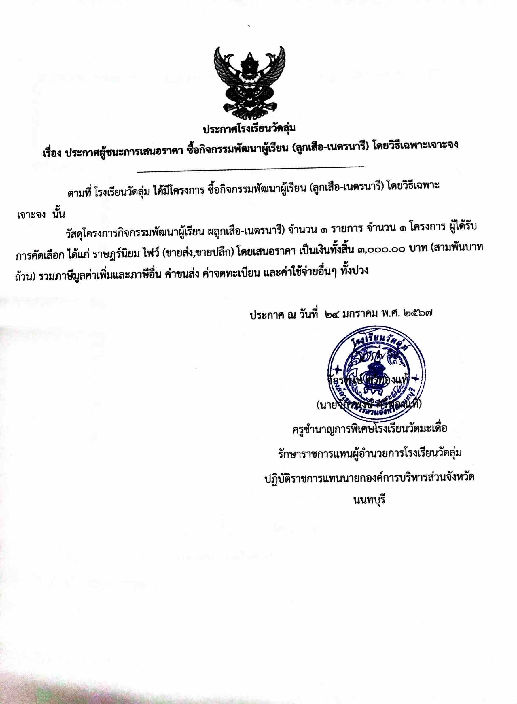 ประกาศโครงการกิจกรรมพัฒนาผู้เรียน ลูกเสือเนตรนารี