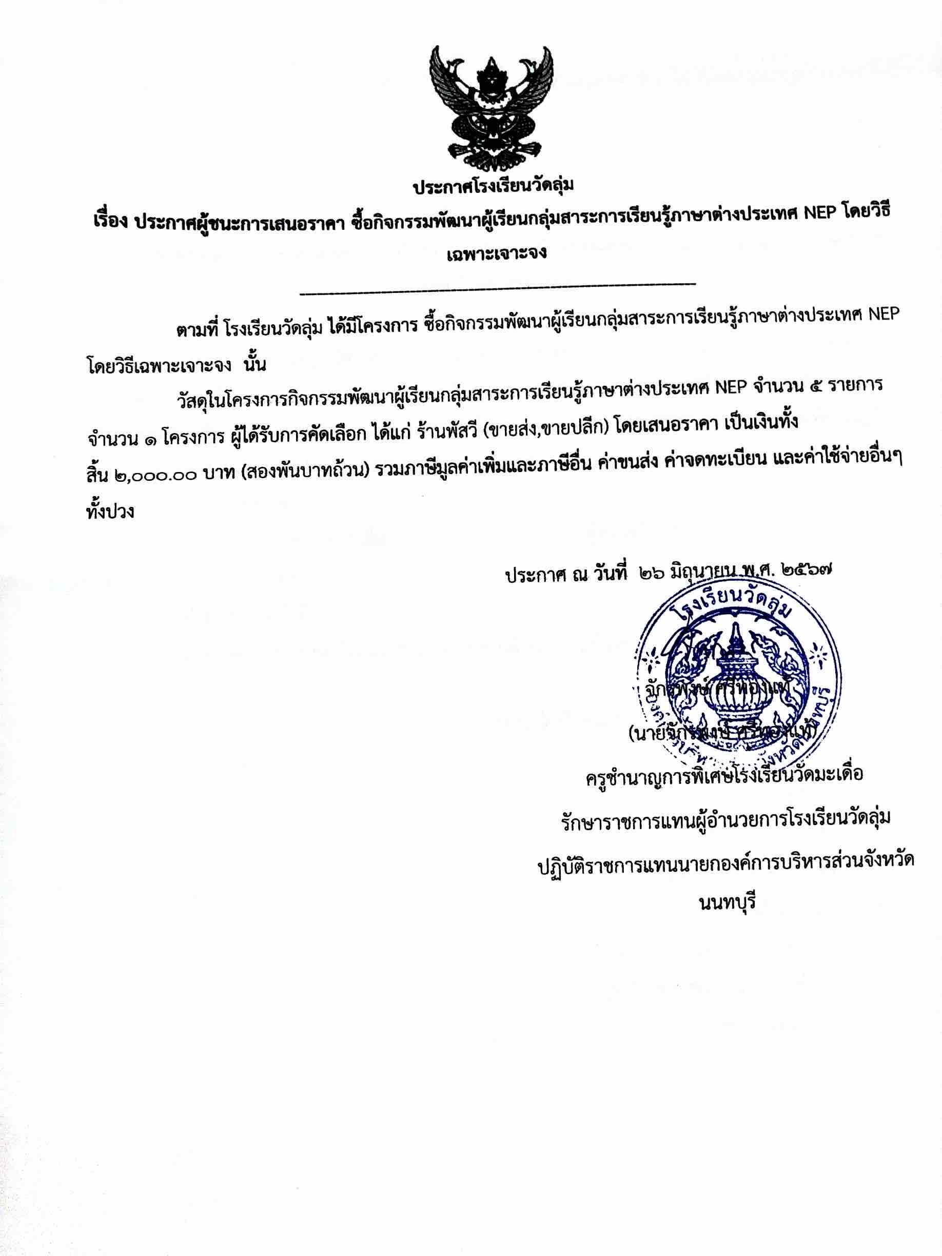 ประกาศโครงการกิจกรรมพัฒนาผู้เรียนกลุ่มสาระการเรียนรู้ภาษาต่างประเทศ NEP