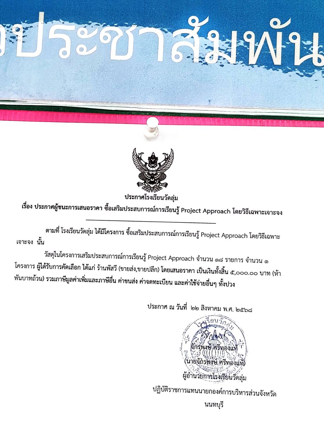 โครงการเสริมสร้างประสบการณ์การเรียนรู้ Project Approach
